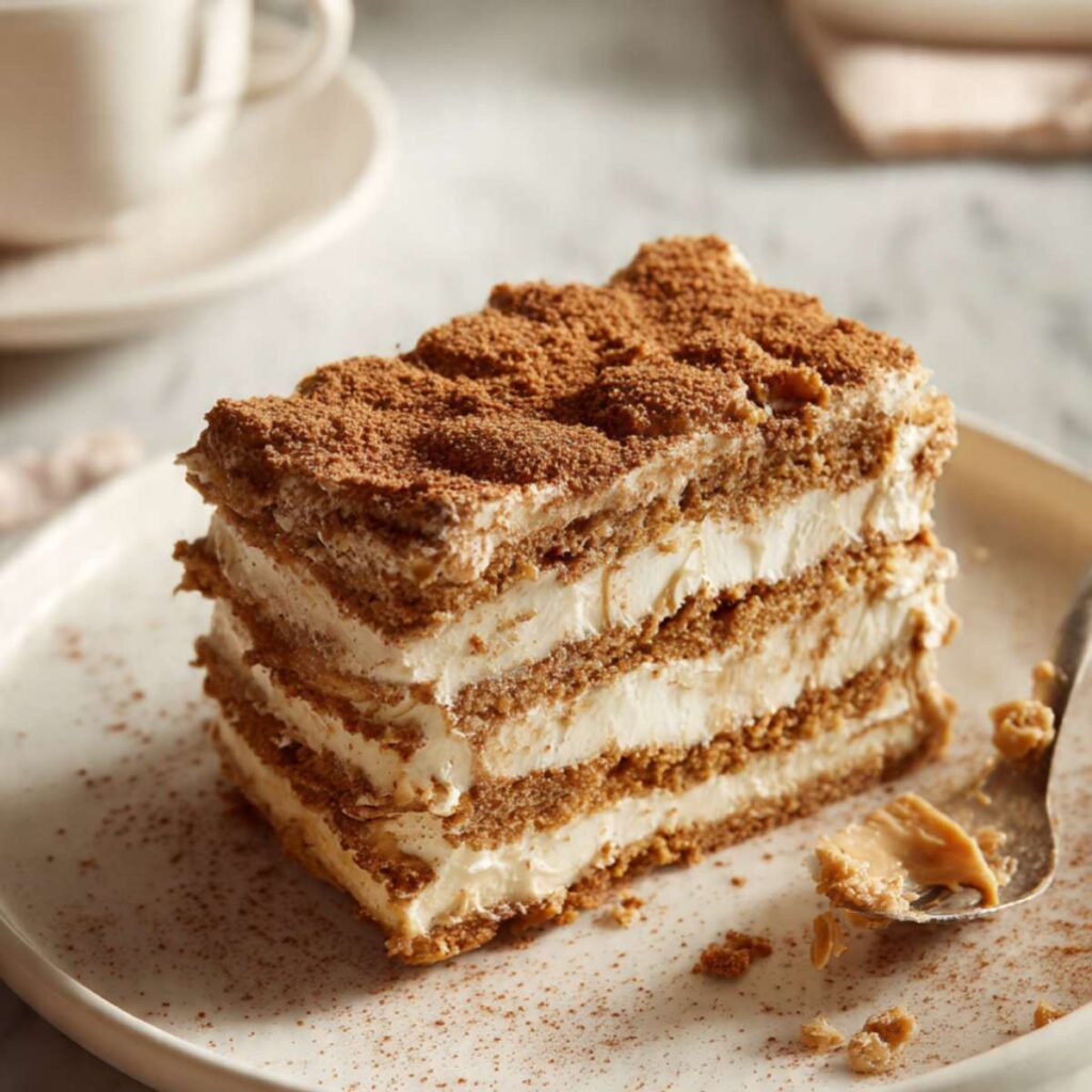This recipe is easy to assemble and does not require baking. The layers come together quickly, and the fridge does all the work. The texture is soft and creamy, and the cookie butter adds a rich, spiced flavor that feels comforting without being heavy. It is also easy to make ahead, which takes the pressure off on busy days.