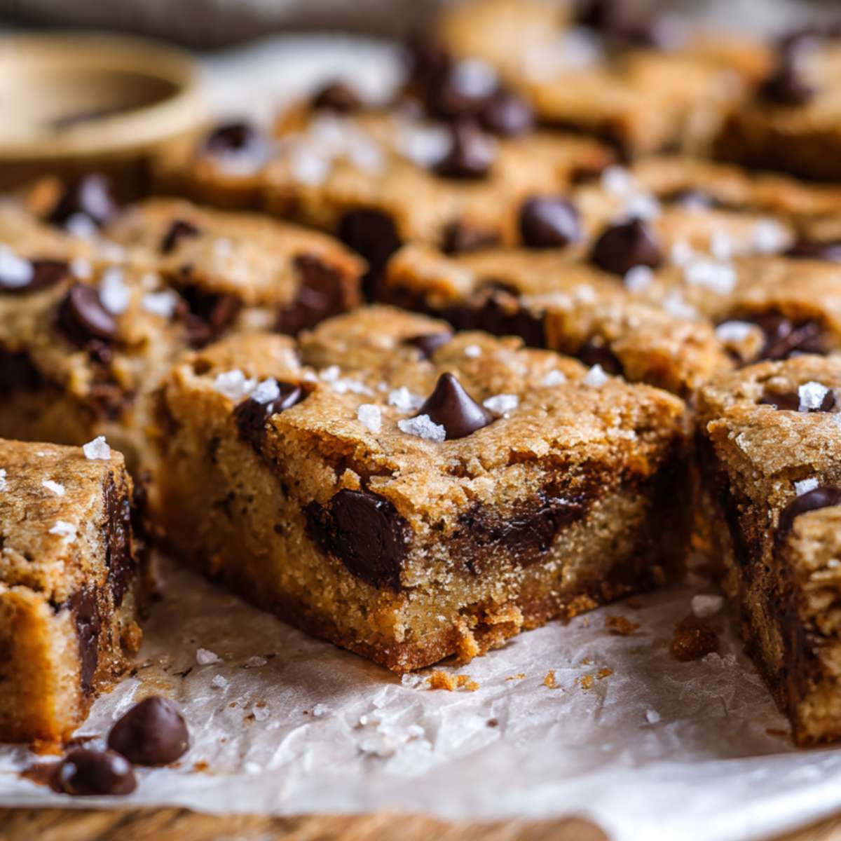 Melted butter makes the bars dense and chewy instead of fluffy. Baking the dough in one pan keeps the center soft while the edges brown slightly. Pulling the bars from the oven while the middle is still soft keeps them moist once cooled.