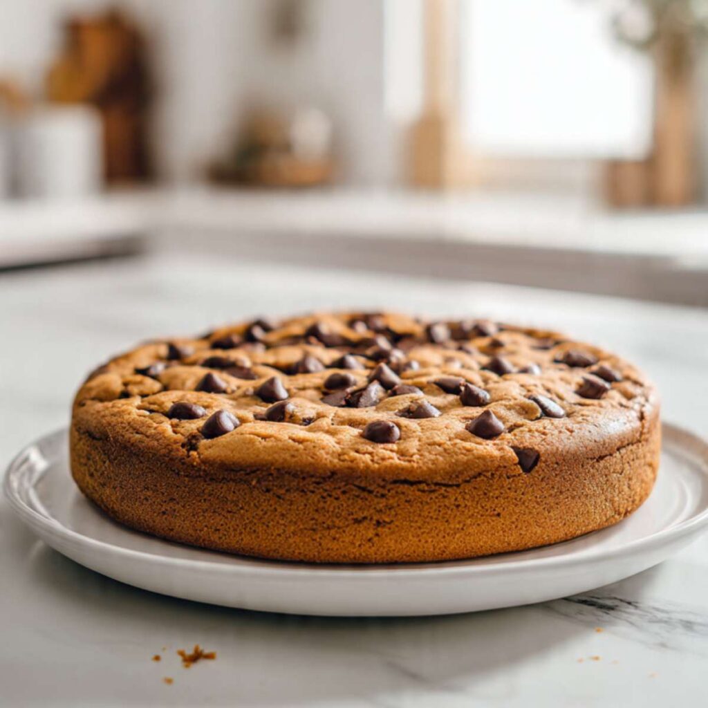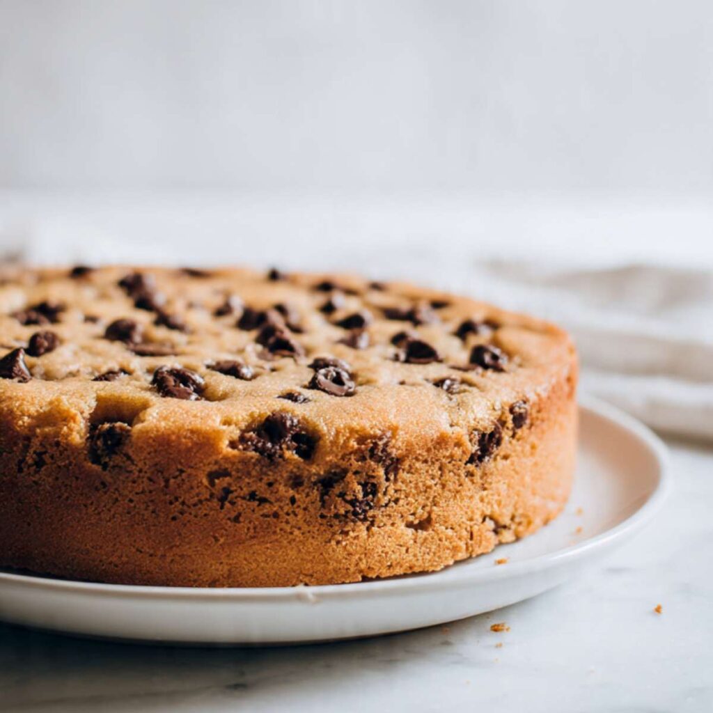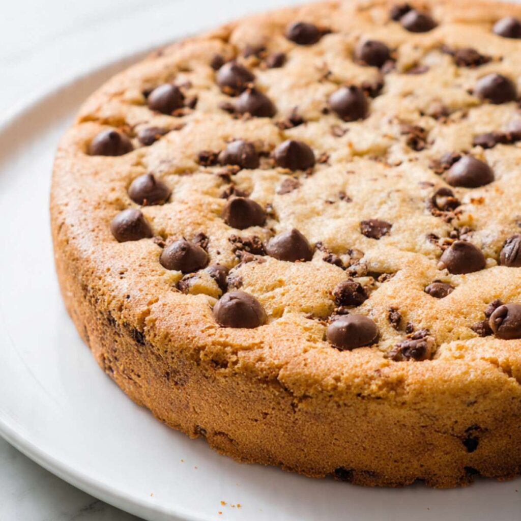 This chocolate chip cookie cake is a simple, one-pan dessert that delivers a soft, chewy center with lightly crisp edges and a buttery, sweet flavor. The process involves preheating the oven and greasing a round pan, creaming butter and sugar for a smooth texture, then mixing in the egg and vanilla. The dry ingredients are added gently to avoid toughness, followed by folding in chocolate chips. The thick dough is pressed evenly into the pan and baked until the edges are golden and the center is set but still soft. After cooling so it slices cleanly, it can be decorated with frosting and sprinkles if desired. The recipe is loved for its ease—no scooping or chilling—while still giving the taste and texture of a classic soft cookie.