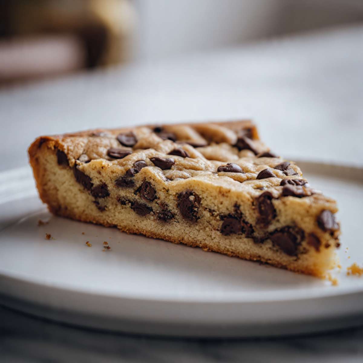 Baking the dough in one pan keeps the center soft while the edges brown. The thick dough holds the chocolate chips in place, so every slice has some. Taking it out while the middle is still soft keeps it chewy instead of dry.