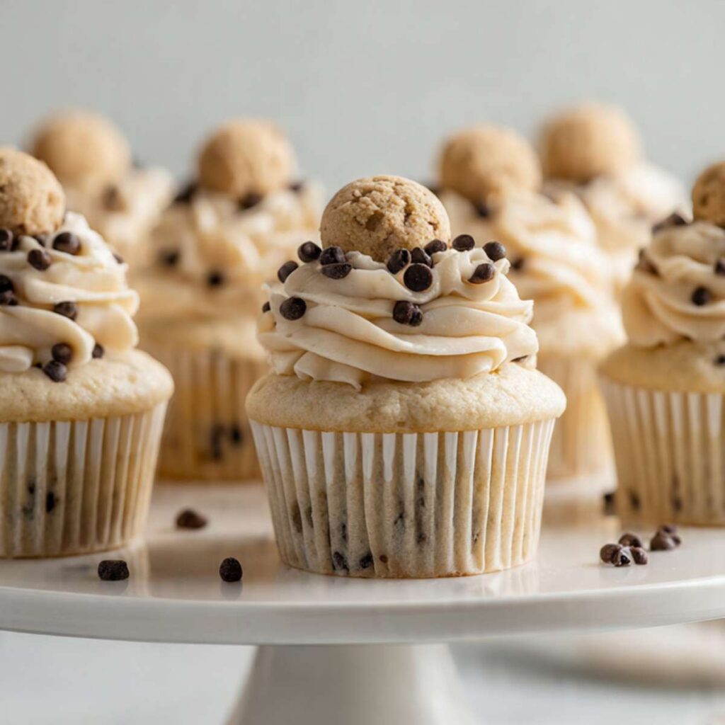 In my kitchen, these cookie dough cupcakes are my go-to when I want a dessert that feels both playful and indulgent. Each one starts with a light, tender cupcake batter folded with mini chocolate chips and baked just until golden and springy. Once completely cooled, I core the centers and tuck in a scoop of silky, creamy cookie dough that stays soft and rich against the fluffy cake.