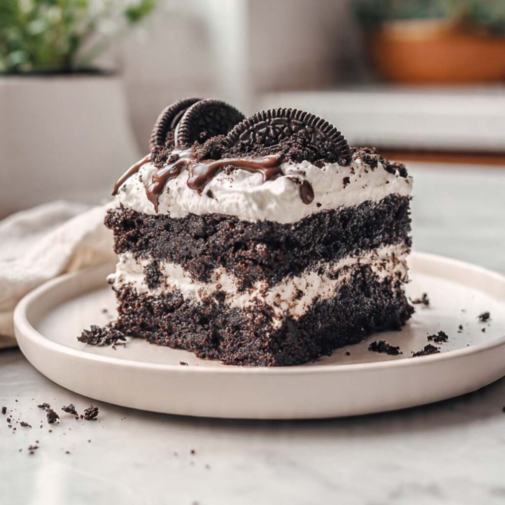 This recipe works well because it is simple and flexible. The cake stays very moist because the filling soaks into every layer. The creamy topping balances the rich chocolate base, and the Oreo pieces add texture without extra work. It also holds up well in the fridge, so it is easy to make ahead and serve later without stress.