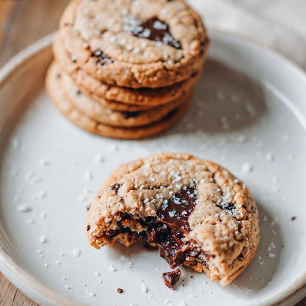 Remove the tray from the oven and sprinkle flaky salt on top if using. Let the cookies rest on the pan for about 10 minutes. They will set up during this time without drying out. After that, move them to a rack to cool completely or eat them warm while the chocolate is still melted.