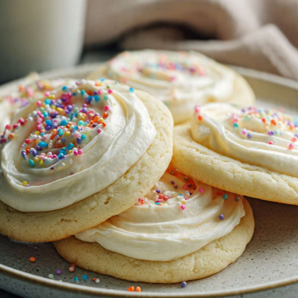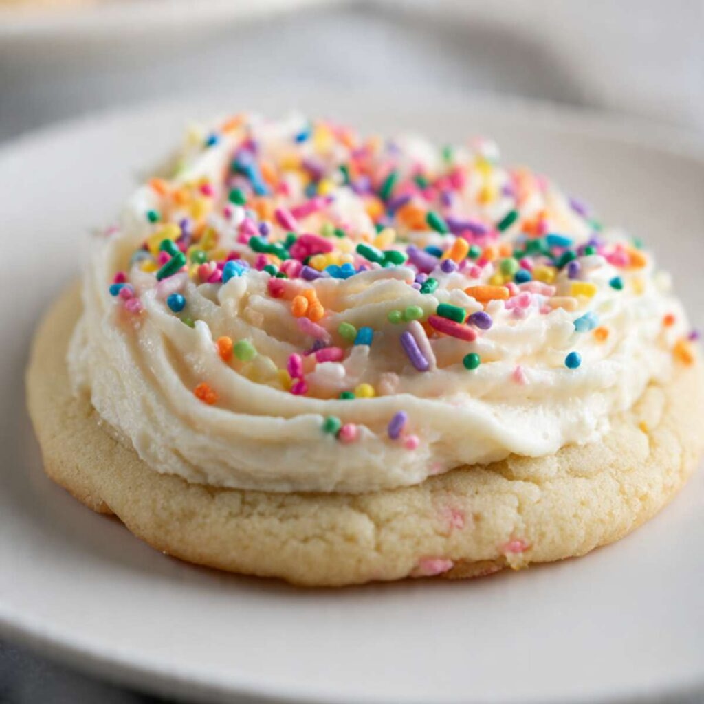 This recipe keeps the cookies soft by baking them just until set. The frosting spreads easily and stays creamy once it cools. The steps are simple, and nothing needs special tools. I can change the frosting color or sprinkles without changing the base recipe, which makes it easy to repeat.